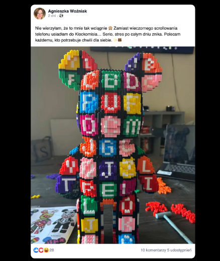 Odkryj na nowo prostą przyjemność tworzenia czegoś wyjątkowego własnymi rękami. Klockomisie™ dają Ci uważną, relaksującą odskocznię, kawałek po kawałku. To idealny sposób, by odpocząć od ekranów i zaangażować swoją kreatywność.