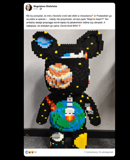Budowanie misia ma być przyjemną przygodą, a nie źródłem frustracji. Wymaga trochę skupienia, ale dzięki jasnym instrukcjom krok po kroku każdy sobie poradzi. To świetna zabawa zarówno dla dzieci, młodzieży, jak i dorosłych.